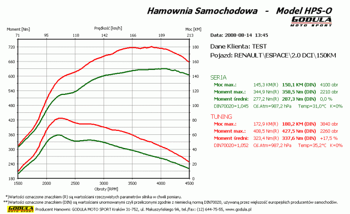 W tabelce powyżej przedstawiono dane samochodu tuningowanego przez nas na hamowni.