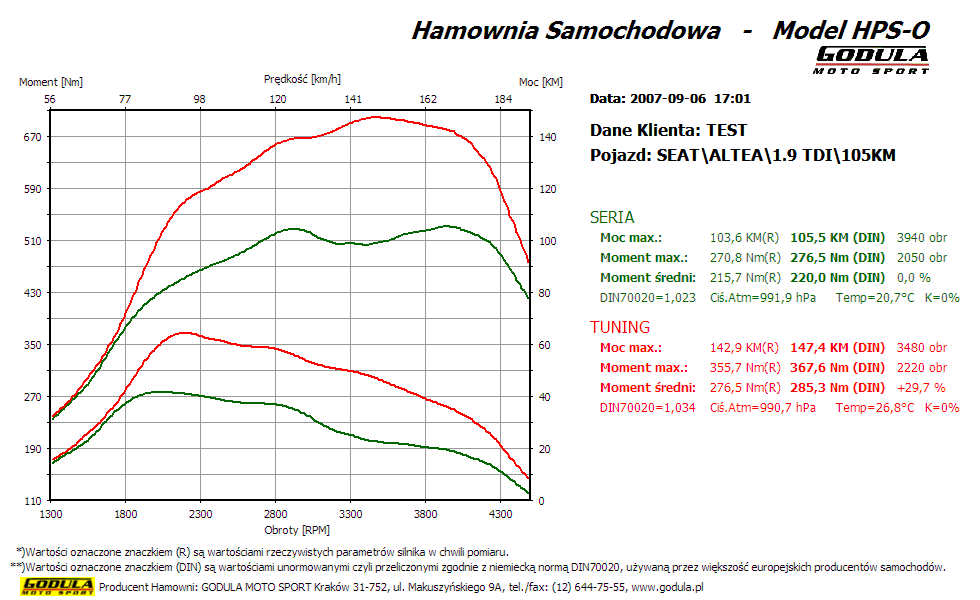 W tabelce powyżej przedstawiono dane samochodu tuningowanego przez nas na hamowni.